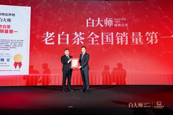 2024年12月18日,白大师1218闷茶节暨2024全国经销商大会在厦圆满落幕。会上,沙利文大中华区合伙人兼董事总经理杨晓骋为白大师颁发了“老白茶全国销量第一”市场地位声明书。