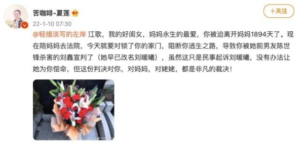 刘鑫称她和江歌是情侣,还骂江歌母亲不配当妈妈江歌母亲起诉刘鑫:刘鑫让我看到了人性的丑陋