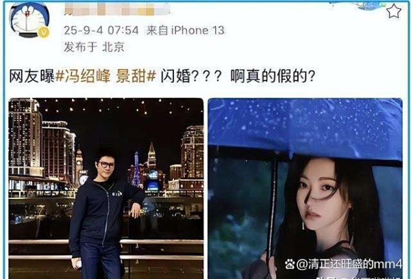 网传景甜冯绍峰闪婚,乔杉转发后秒删,双方工作室紧急辟谣
