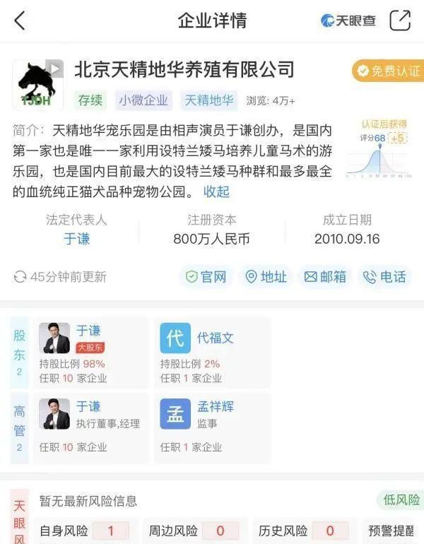 作为持股10%的股东,于谦可能不会插手公司日常的运营事务。
