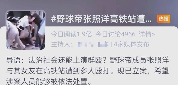 嚣张!野球帝张照洋高铁站遭殴打,2男2女动作娴熟下手狠辣惯犯