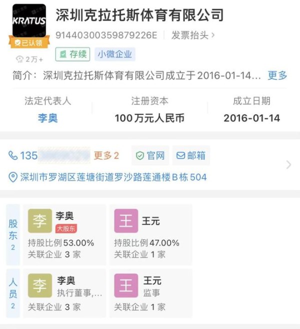 “野球帝”微博简介为深圳克拉斯托体育有限公司品牌经理,据企查查APP,深圳克拉斯托体育有限公司法定代表人为李奥,注册资本100万元人民币,成立于2016年1月14日。