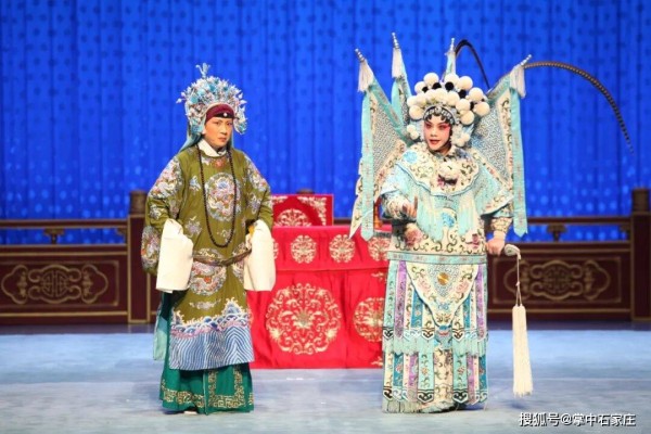 《杨门女将》讲述了杨宗保沙场重伤身亡,在天波府阖府悲恸之际,年迈的佘太君毅然挂帅,率领杨家众女将奔赴边关、英勇破敌的壮烈故事。石家庄丝弦高亢激越、苍劲古朴的声腔,与这一悲壮故事相得益彰。舞台上,饰演佘太君的演员唱腔浑厚苍凉,一句“一句话恼得我火燃双鬓”尽显老英雄的悲愤与决绝;而“探谷”一折中,饰演穆桂英的演员则展现出丝弦唱腔中刚柔并济的特色,将巾帼英雄的智勇与坚韧刻画得入木三分。