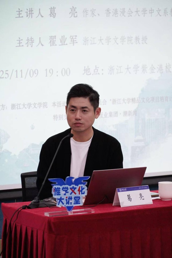 11月9日晚,香港浸会大学中文系教授葛亮做客钱报读书会,与浙江大学文学院教授翟业军一起来到浙江大学“惟学文化大讲堂”。