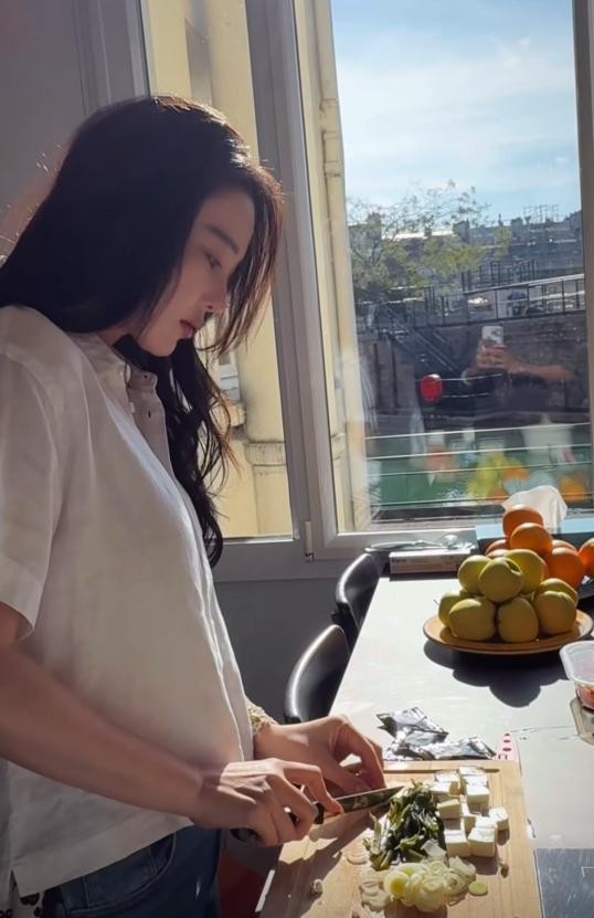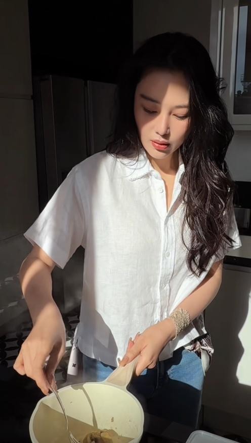 回国后晒出的那组居家照片,很快在社交平台被转发:厨房里切菜的她、抱着孩子的她、还有窗边一个认真按下快门的身影——那是她的丈夫。