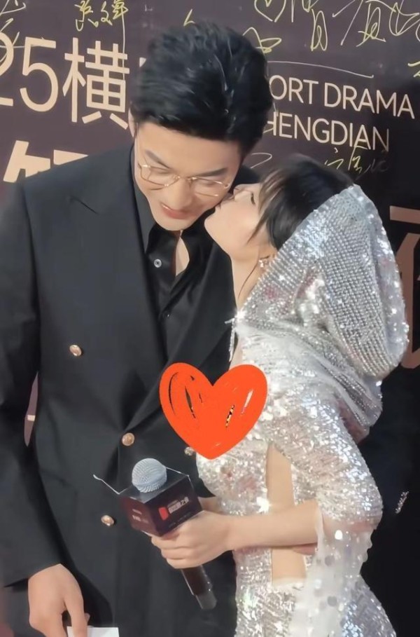 于龙杨咩咩红毯互动曝光,两人当众亲脸撒糖,于龙耳朵通红