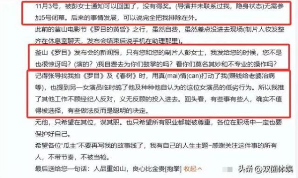 这事闹得沸沸扬扬,如今导演张律和制片人彭瑾终于坐不住了,在11月7日晚来了个全盘回应,把整件事的来龙去脉说了个明明白白。