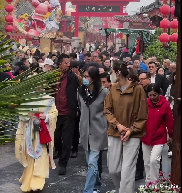 不过他们这俩高高的身形嘛,用东北话讲,搁人群里真是“贼拉显眼”。虽说戴了口罩,郎平大衣配深色牛仔裤的装束,看着比一些旁边游客简单许多,朱婷更是随便穿了身中性风,偏要融入市井氛围,可效果吧,一般——高海拔能咋整呢,硬是引来了不少游客围观。你别说,现场气氛还算井然,但人群依旧有点挤,郎平一边低声和朱婷说着啥,朱婷就显得有点拘谨了,时不时回头瞅瞅,不过说句实话,我倒挺敬佩两人见惯世面的沉着,会说话的场面人也是受过高规格洗礼啊。