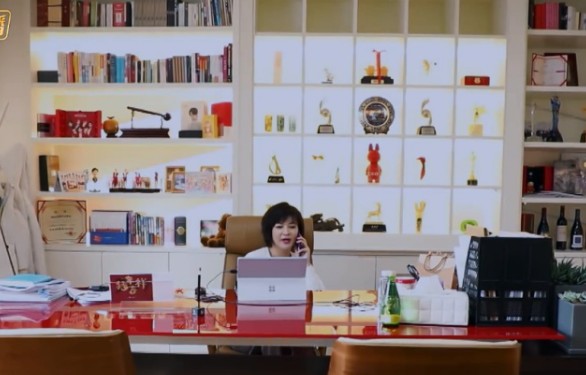 从照片中可以看出,杜华办公室的整个面积非常的大,而且在她背后还设置了一面墙的橱柜,专门用来放置一些奖杯,而且也可以从侧面看出,乐华在娱乐圈中的成绩做的还是相当不错的。