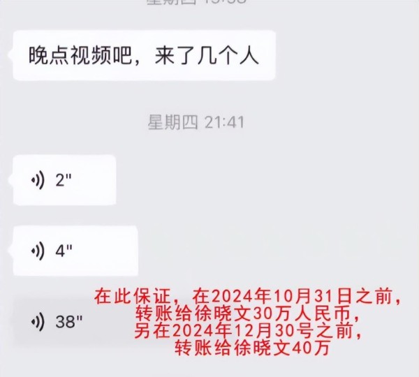 最铁的证据是一段时长1分23秒的语音,里面韩磊明确答应分两次转账给对方,第一笔在2024年10月31日之前给30万,第二笔在12月30日之前再转40万,其余的30万则等孩子出生后一次性支付。