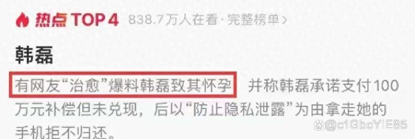 8月末,辽宁一名36岁的女网友“治愈”在网上爆了个大瓜,直接把流量按在了地上摩擦。这年头,谁家娱乐圈不来点腥风血雨都不好意思出门了!知名歌手韩磊卷进了“怀孕失联”“高额补偿”“私生活混乱”等一堆大字报。隔壁邻居都要感叹这瓜比我家院里种的还水灵!更神的是,网友的所有爆料内容居然一夜之间全部被举报“侵权”下架,人没了,账号也没了,仿佛一切都没发生过。“瓜田里的事儿,有没有后续?”估计大家都和我一样,心里打着哆嗦等着下一集……