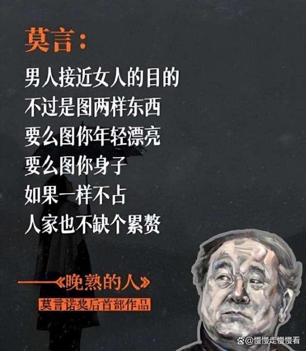 莫言出名后,一个女孩找到他说:我...@有料速看的动态莫言成名后,一个女孩数次向他表白,调查他的家庭情况,没想到莫言一句话将其劝退