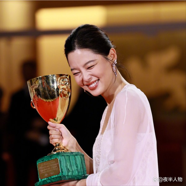 她在获得威尼斯影后时,激动地吻了奖杯,回到后台还咬了奖杯。