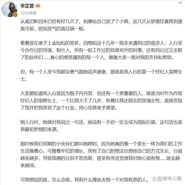后来,与很多明星一样,辛芷蕾在合约结束后,选择了离开。
