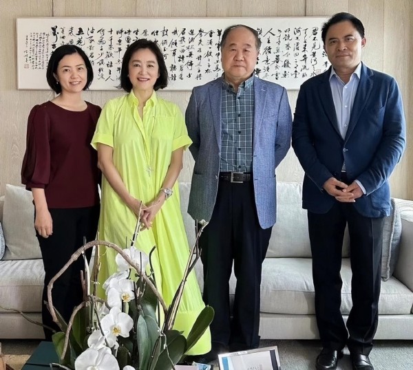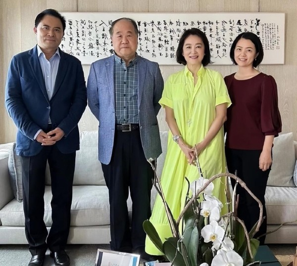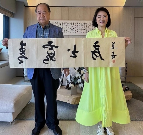 林青霞与莫言罕见同框,两人都是68岁相谈甚欢,还互相赠送礼物