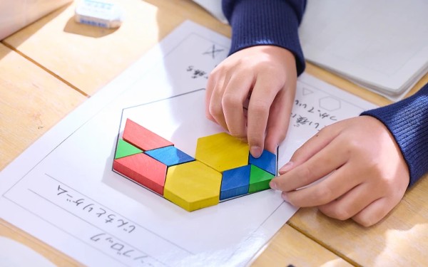 算数では、図形や数のゲーム・パズルを使った「AA(Arithmetic Activity)授業」を毎時間の冒頭に行い、楽しみながら計算力や図形感覚を養っています。