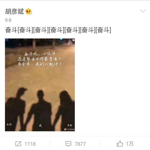其次,胡彦斌在发文时专门提到了“不熟”两个字,但薛之谦刚于9月8日凌晨发文宣布和高磊鑫在一起了,傍晚胡彦斌发了一条名为“奋斗”的说说。不仅配图是薛之谦和高磊鑫之前发出的照片,还又p了个人上去,如果两人确实不熟,胡彦斌又为什么对薛之谦的动向如此清楚?而且其图片配字“还是努力工作更靠谱”,更被网友质疑暗讽薛之谦。