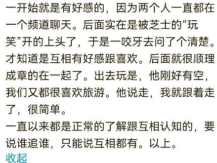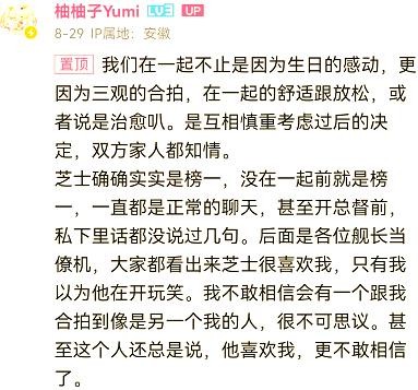 并在评论区回应了网友们关于她和榜一恋情的猜测,澄清道他们的在一起并不仅仅是因为感动。她坦言,与榜一的选择并非仅仅基于感动,而是源于彼此观念的契合。柚柚子与榜一芝士因生日礼物而发展出亲密关系,基于情感认同及双方家庭支持共同决定走到一起。