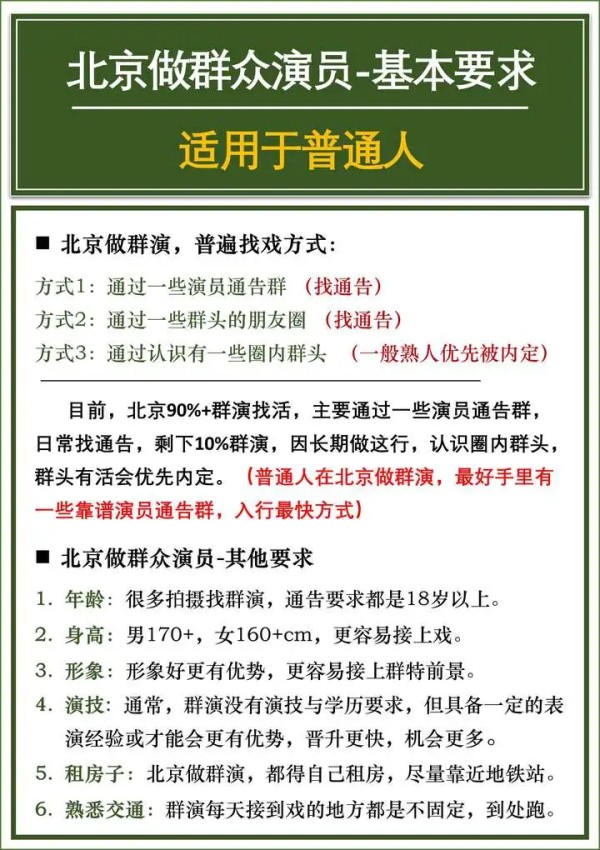 北京做群演|群众演员常见的主要是3个接戏途径揭秘在北京如何做演员,演员们需做4个准备,了解3个主要接戏途径