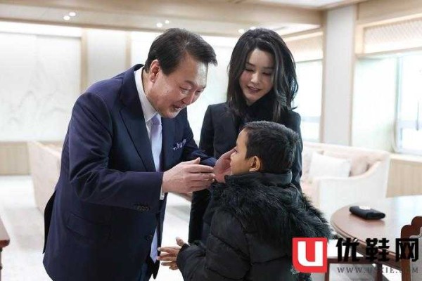 韩国第一夫人逛街!一身洋气打扮与粉丝小孩合影,抱娃姿势太别扭
