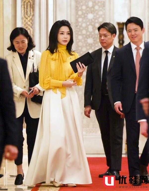 被韩国第一夫人金建希美到了!穿小黄裙配童颜脸,真看不出有52岁