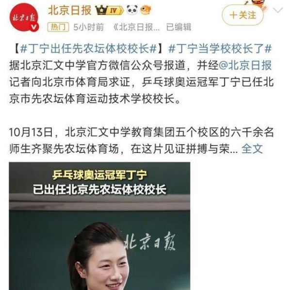 就拿丁宁来说,当大家还沉浸在她里约奥运会夺冠后振臂高呼的记忆里,一转眼,人家已经悄悄换了个赛道,而且直接冲上了管理层的巅峰。