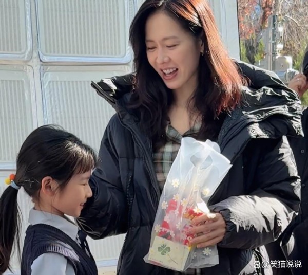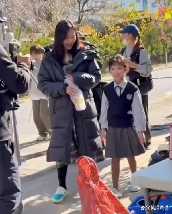 在视频中可以看到,孙艺珍穿着一件黑色的羽绒服长外套,她跟工作人员走向休息区。小演员在看到孙艺珍时,连忙将自己定制的饼干小礼物送给她。孙艺珍在看到小演员送的礼物时,露出了很惊喜的表情,然后又很开心地笑了,并且接过小演员递给的礼物。除此之外,孙艺珍很开心地伸手摸了摸小演员的头表示感谢,小演员也被孙艺珍的这个温暖的举动给感染到了,她也露出了开心的笑容,跟孙艺珍一起走向休息区。
