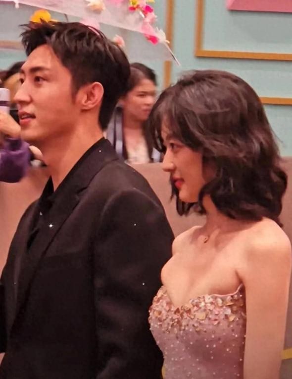 在舞台上,他们时而相视一笑,时而低头私语,举止间充满了亲昵和默契。