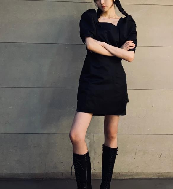 4 / 7 孙千不仅与全智贤撞脸,她自身的时尚品味也一点都不输于全智贤本尊。她这个造型中扎起的双麻花辫发型是很符合她自身的年龄段,整身黑色长裙的出现又让她看着超级优雅。在她穿着的这身黑色连衣裙中出现的“空气袖”也是当下很流行的时尚设计,配上一双黑色皮质长靴后孙千的形象看着更不要太有高奢感了呢。