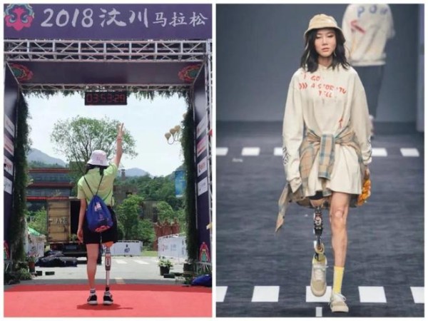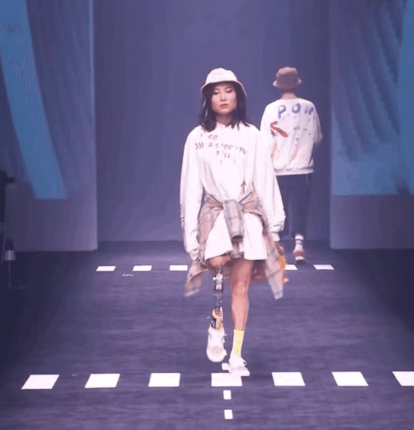 后来,她的勇敢一发不可收拾,上海时装周,她迈着“钢腿”,骄傲的走在舞台上。