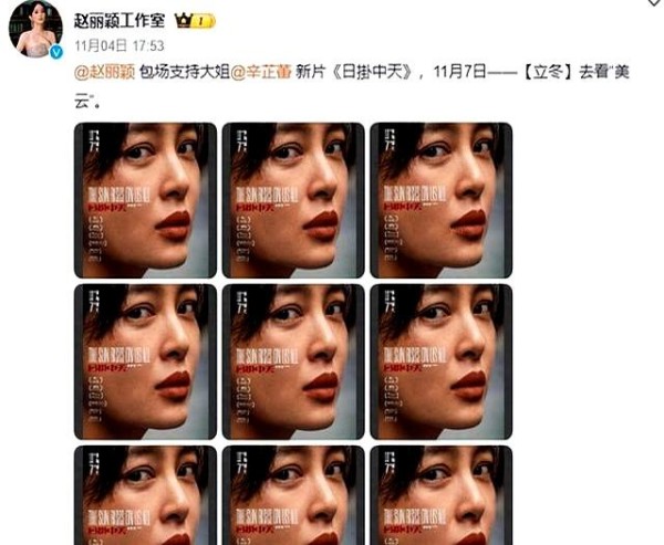赵丽颖工作室前两天在社交平台发了动态,说是为辛芷蕾的新电影连包了十场,不光是发了票,还喊辛芷蕾“大姐”。