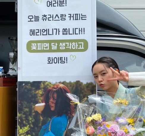 仔细一看应援车上还写着今天的吉拿棒跟咖啡都是惠利姊姊请的!《花开时想月》加油!随后惠利也公开两人的合照,让不少网友大喊也想要Rosé这样的另一半,甜蜜举动堪比男朋友。