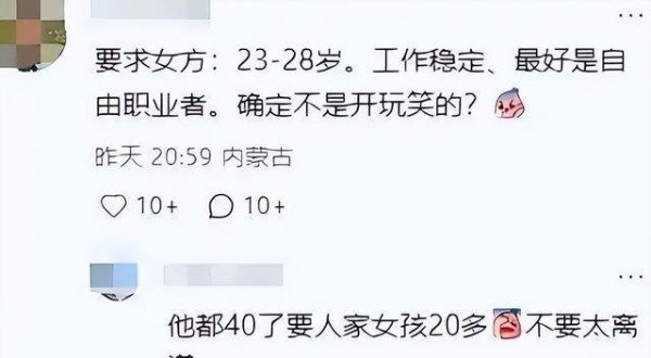 更有意思的是,他的择偶条件还挺高,夹个年龄23到28岁,身高165以上