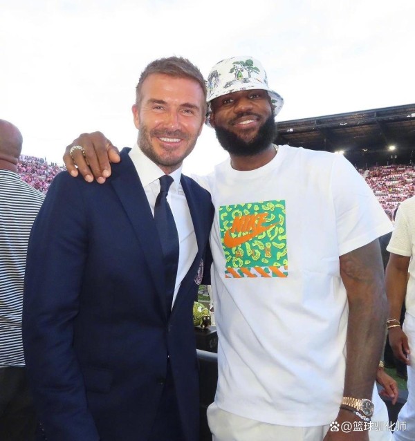 历史性时刻!詹姆斯为梅西首秀加油,拥抱互搓背还合影小贝夫妇