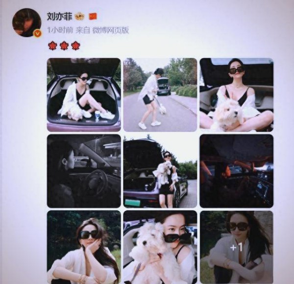 在曝光的一张照片中,刘亦菲驾驶着极光绿的智界R7汽车。刘亦菲作为智界R7的代言人,自驾出游的照片曝光后,引发智界R7销量的激增,展示了她强大的带货能力。背景中的汽车与她身旁的可爱狗狗形成了鲜明的对比,展现出一种别样的反差萌。