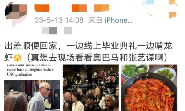 张艺谋现身美国,和奥巴马一起参加毕业典礼,两人的孩子是同学