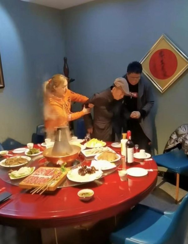 91岁杨少华外出吃火锅,行走艰难靠搀扶,王为念当众下跪索要红包