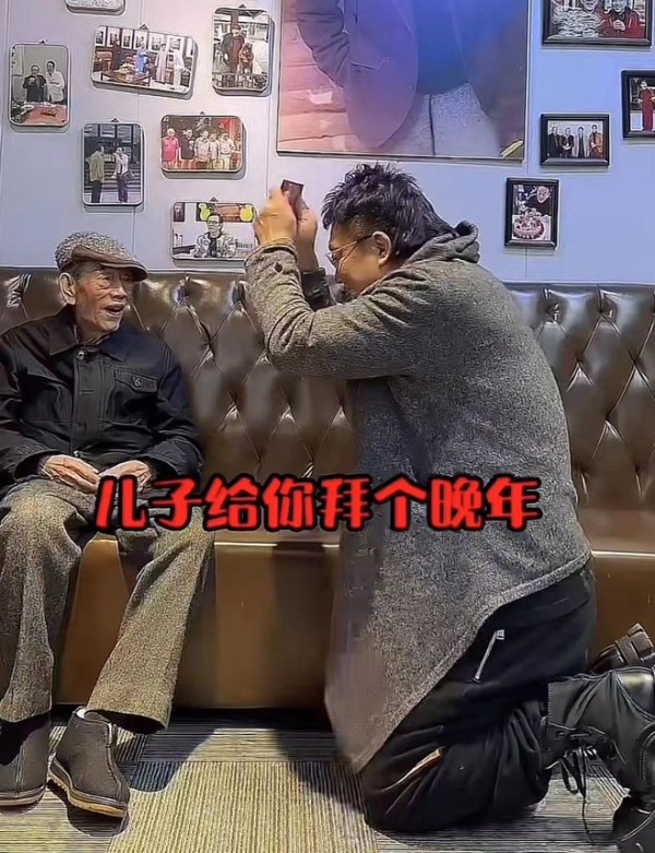 酒足饭饱后,杨少华和王为念坐在沙发上聊天,据悉,两人还是干爹和干儿子的关系。为了彰显出自己的孝顺,王为念直接在大庭广众之下跪在地上,对着杨少华磕头。