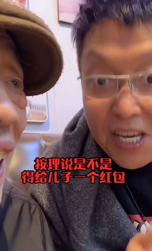 行完大礼后,王为念赶忙坐到干爹身旁,向他索要红包。