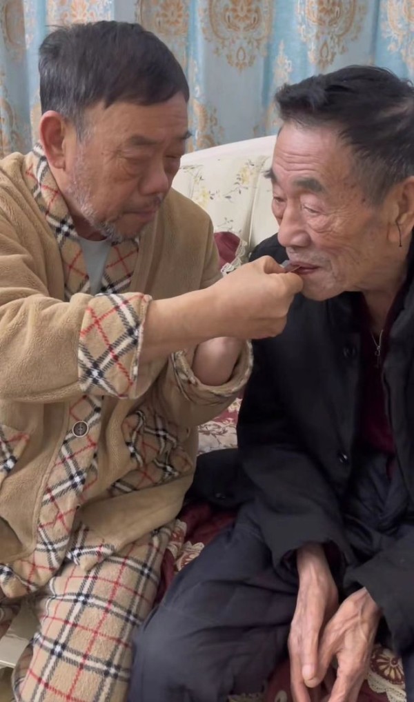 儿子们都对他非常上心,喂饭、喂药等都不在话下。