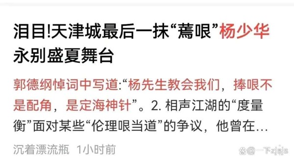 这种“平衡”真的适合所有人吗?杨少华父子坚持传统相声的理念是否会因此被忽视?在悼念背后,是一种真诚的尊重,还是一种艺术化的处理?这些问题或许永远没有答案。