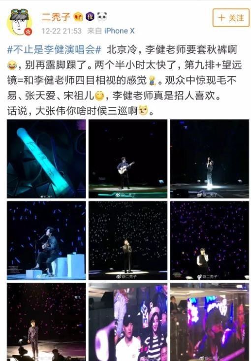 想想李健才是真人生赢家了,有毛不易这样的专业歌手奔着他的演唱会而来,也有张天爱宋祖儿这样的女神因为他的歌声而倾倒,甚至连偶像包袱都不要了,坚持做李健的迷妹为李健打call,哈哈,画面看着还真的很神奇呢!