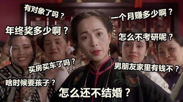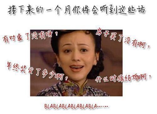 当你面对一个亲戚拷问的时候,其实背后还有更多亲戚(嘿嘿 原来面对的是庞大的“亲戚集团”),你的言谈举止都会被他们相传,甚至还要传到你爸妈耳里。