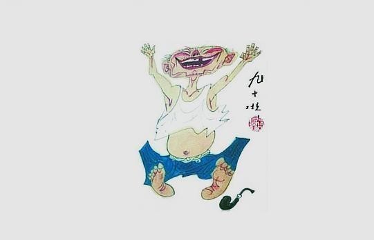 黄永玉自画像:头发没几根,还露着大门牙,看着却比“范曾”厚道
