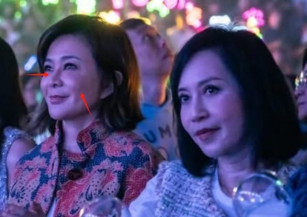 仔细打量关之琳的脸,还真能见到不少“科技感”满满的痕迹,特别是鼻子和苹果肌,苹果肌又大又肿,山根虽然高但看着不太自然,堆叠在一起就显得脸有点僵硬了。而且她的上唇比较薄,再加上那浓得吓人的眼妆也遮不住眼皮的凹陷,整体看起来真是又老又累。