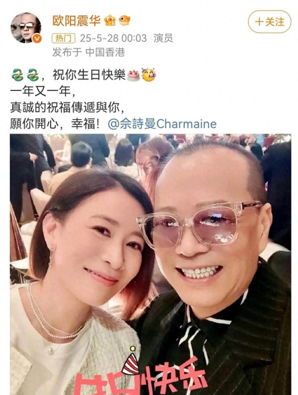 实名羡慕!欧阳震华连续十年为佘诗曼庆生,这关系也太铁了