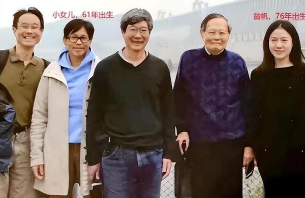 杨振宁遗产分割完,没翁帆一分,与3子女合影,妻子站边上似保姆