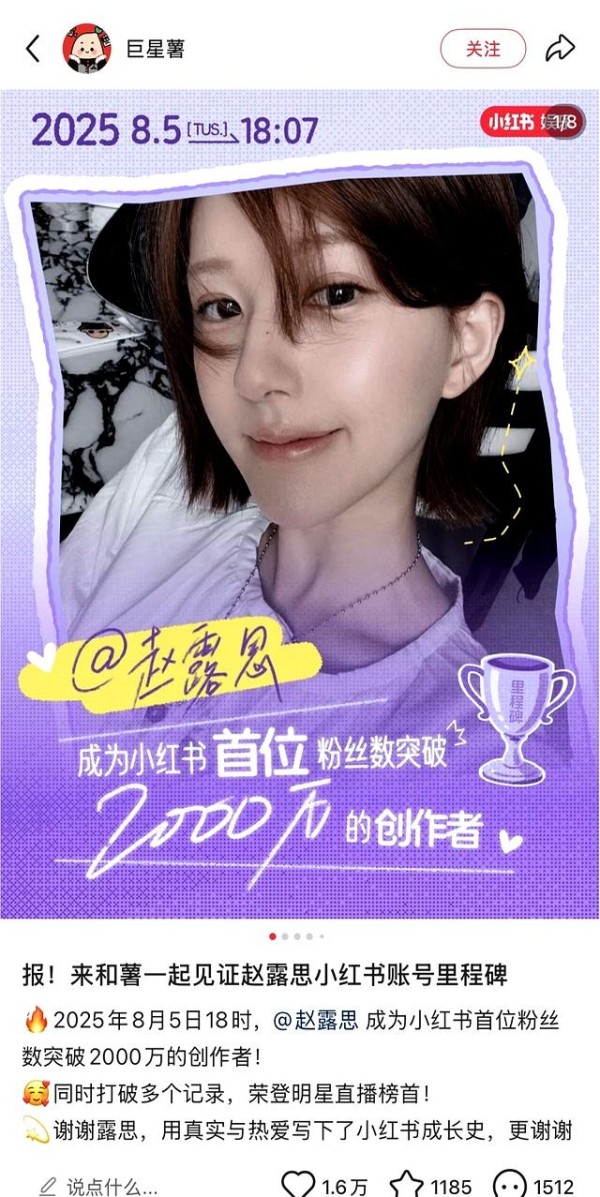 赵露思粉丝破2200万:小红书的“顶流”联手?