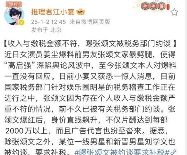 曝张颂文被约谈补税,收入纳税疑似不符,更多细节被曝光!