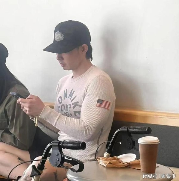 46岁的吴建豪依然很孩子气,他盘腿坐在卡座上,手捧手机并一直低头盯着手机屏幕。吴建豪的着装活力十足,他头戴黑色棒球帽,上身穿了一件白色长袖T恤,下身黑色短裤搭配球鞋,看上去比实际年龄年轻了太多。